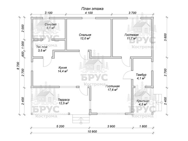 • Размеры: 8.7 x 10.9 м