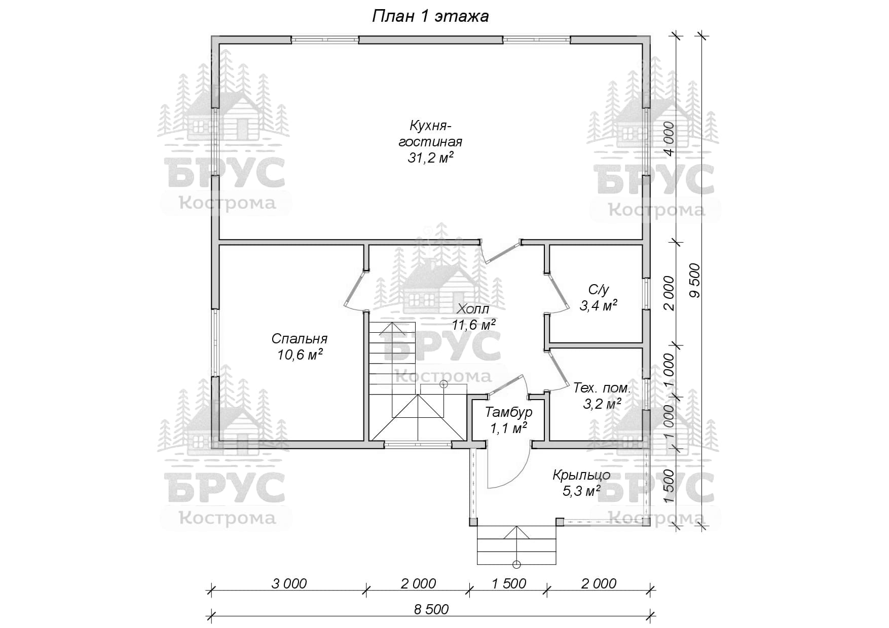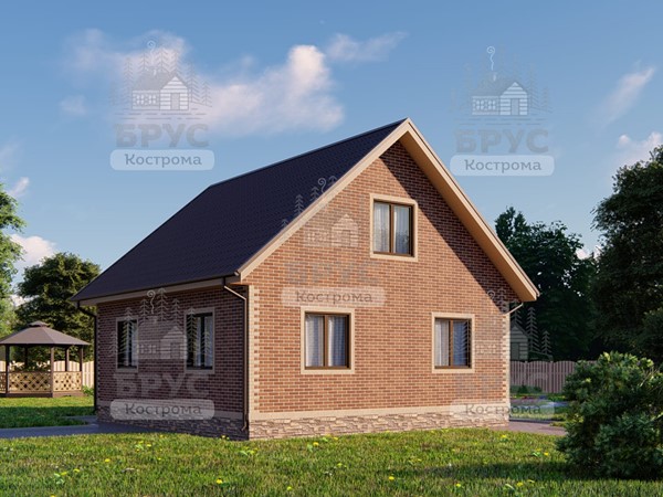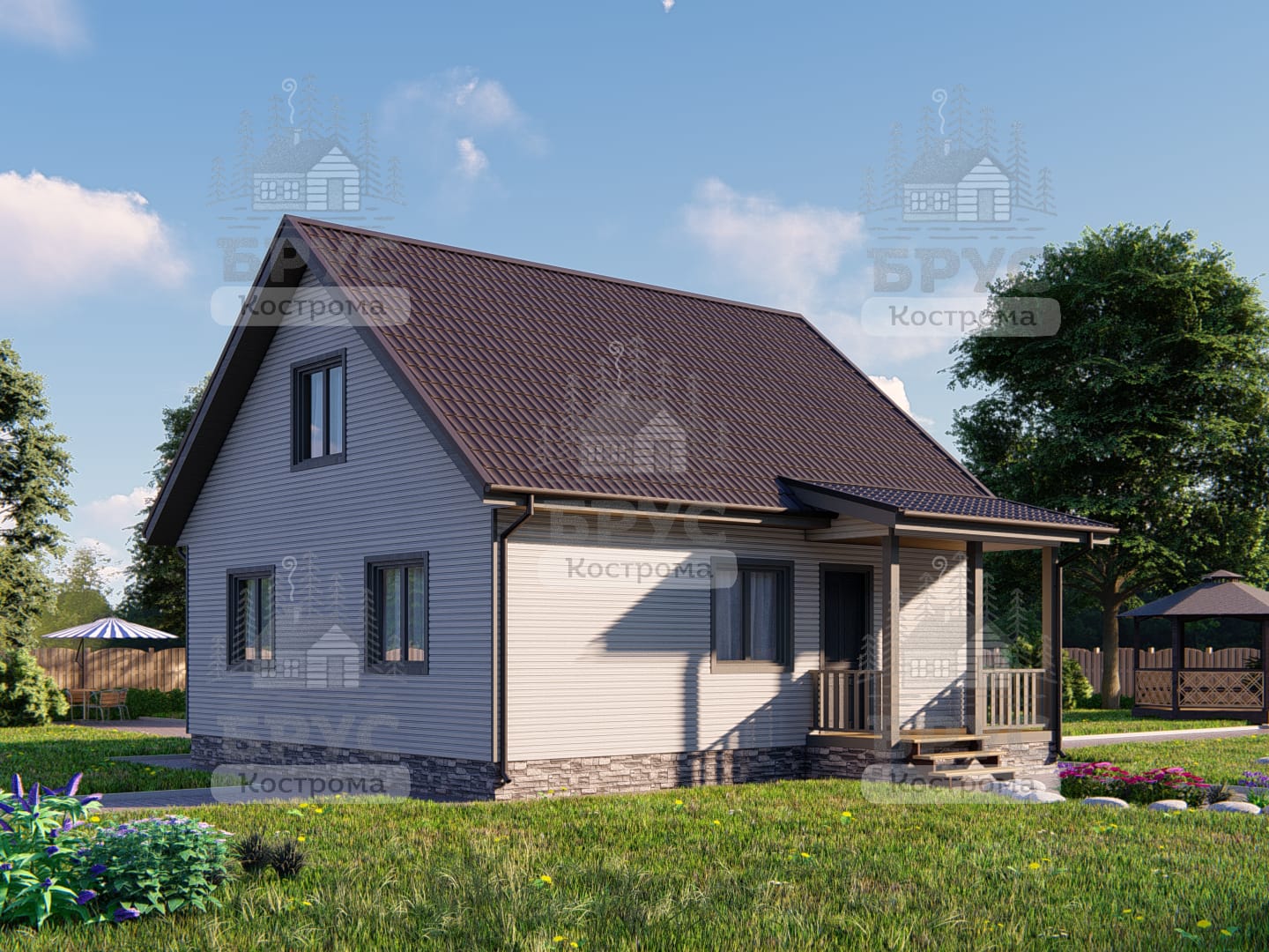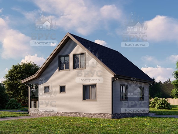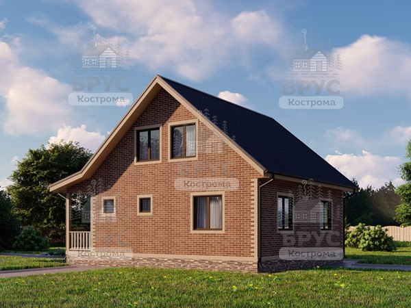 Одноэтажный дом с мансардой и крыльцом. Двухскатная крыша.