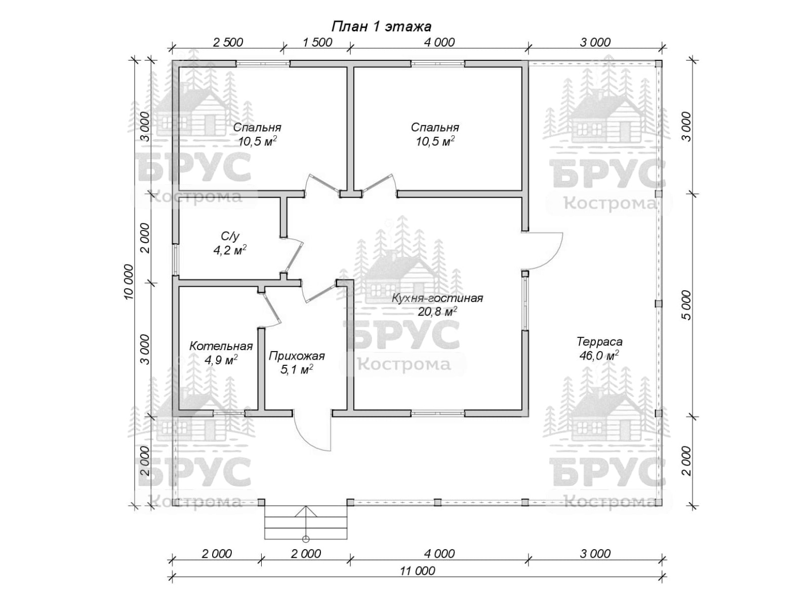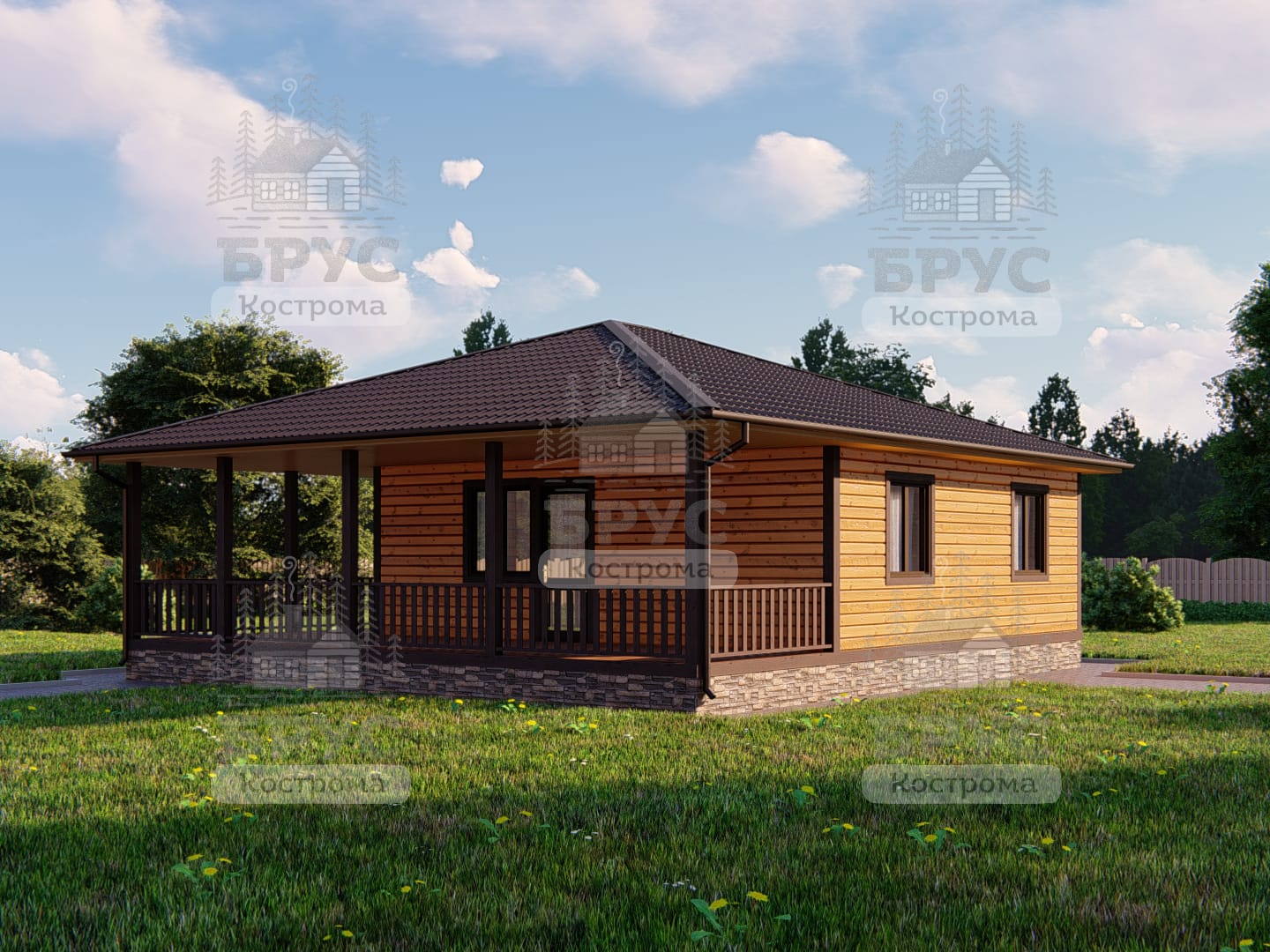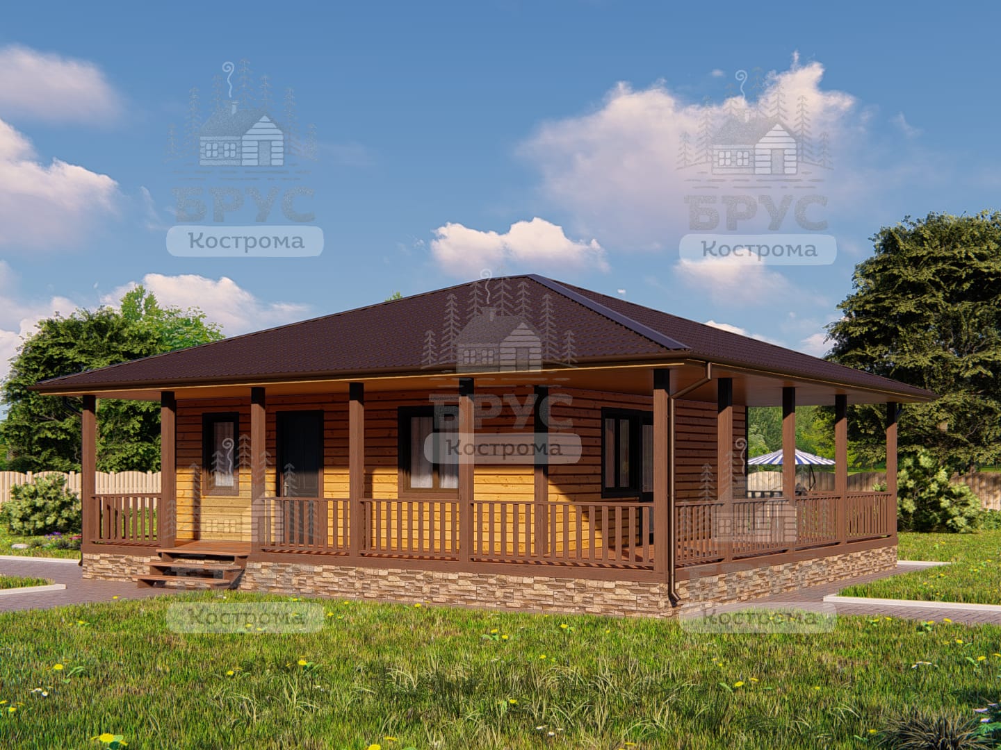 Одноэтажный дом с террасой
