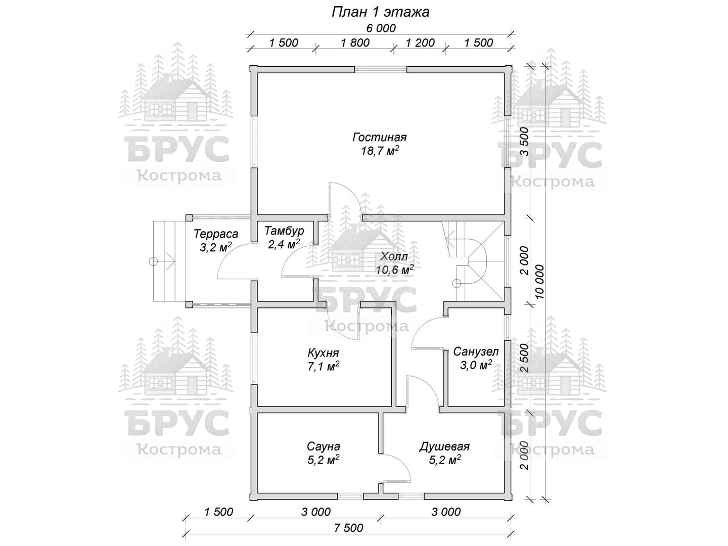 • Размеры: 7.5 x 10 м
