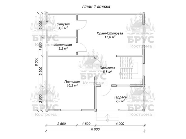 • Размеры: 8 x 8 м