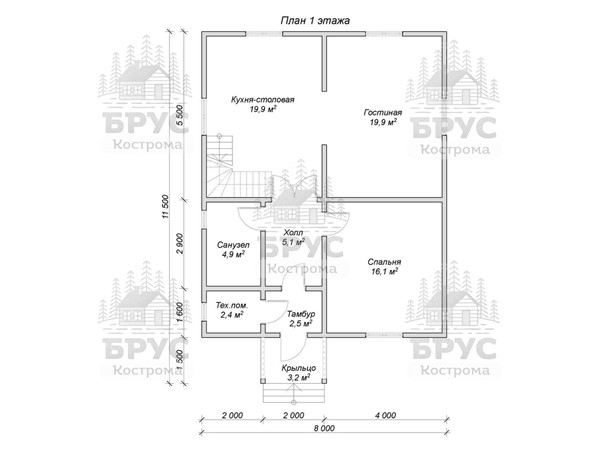 • Размеры: 11.5 x 8 м
