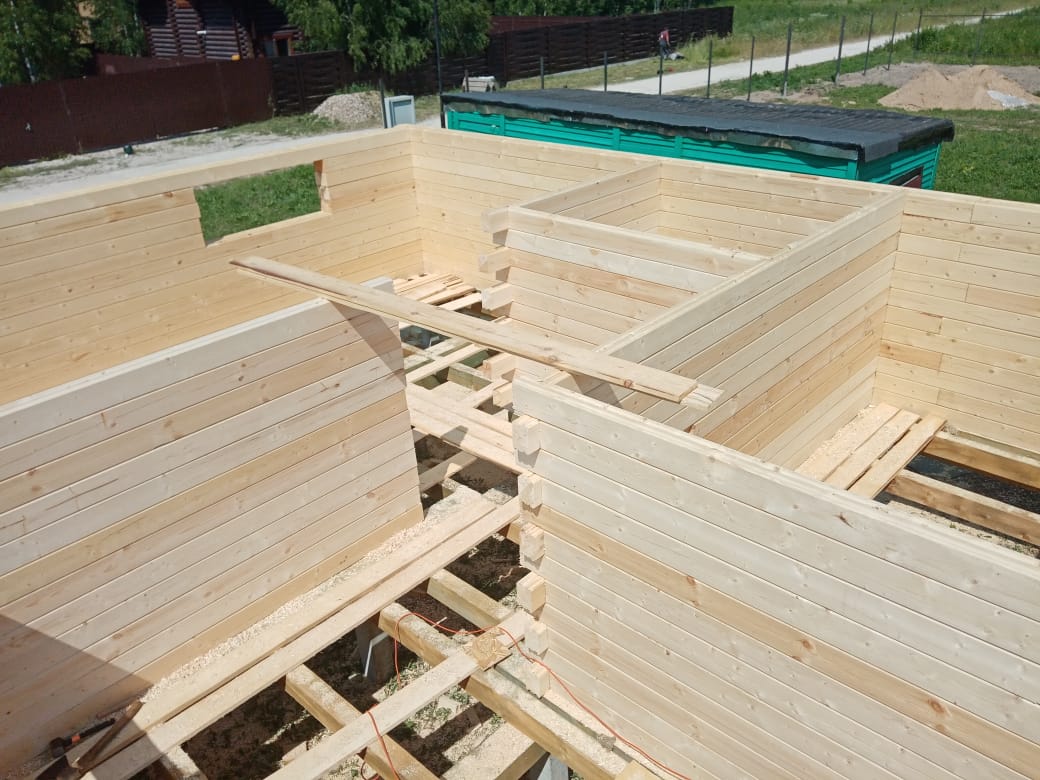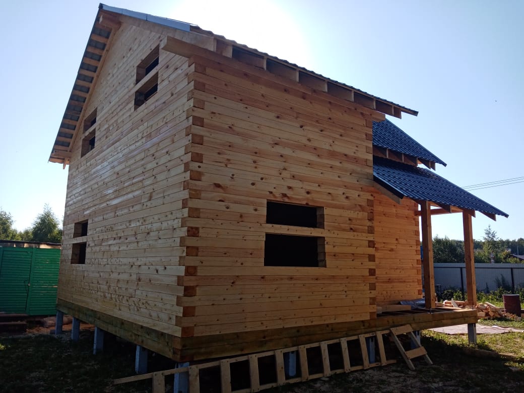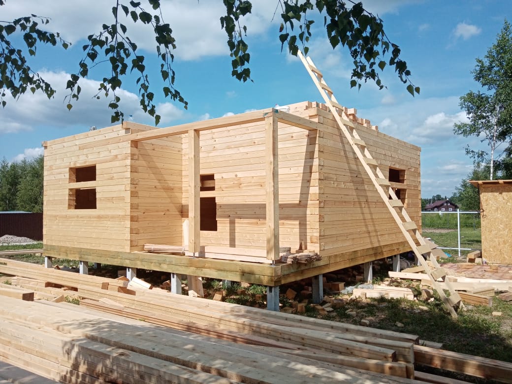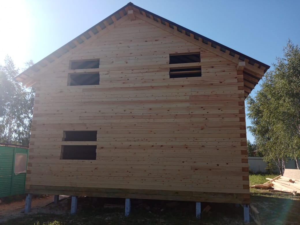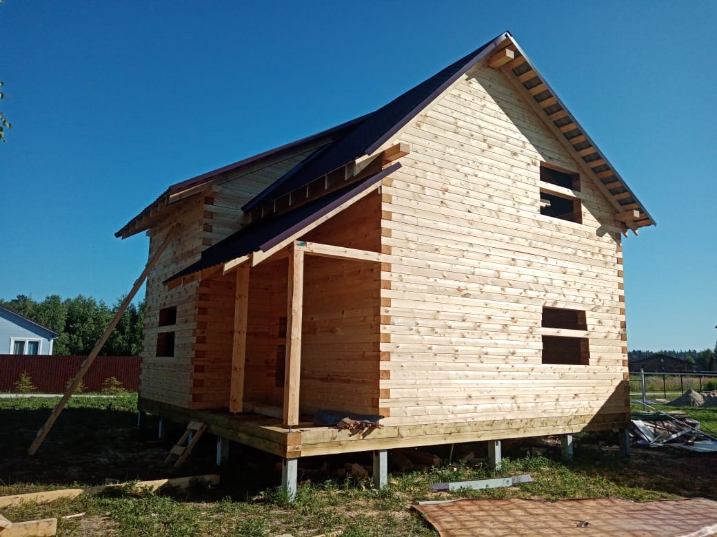 Закончено строительство под усадку двухэтажного дома 8х8 метров из профилированного бруса естественной влажности сечением 150х200 мм.