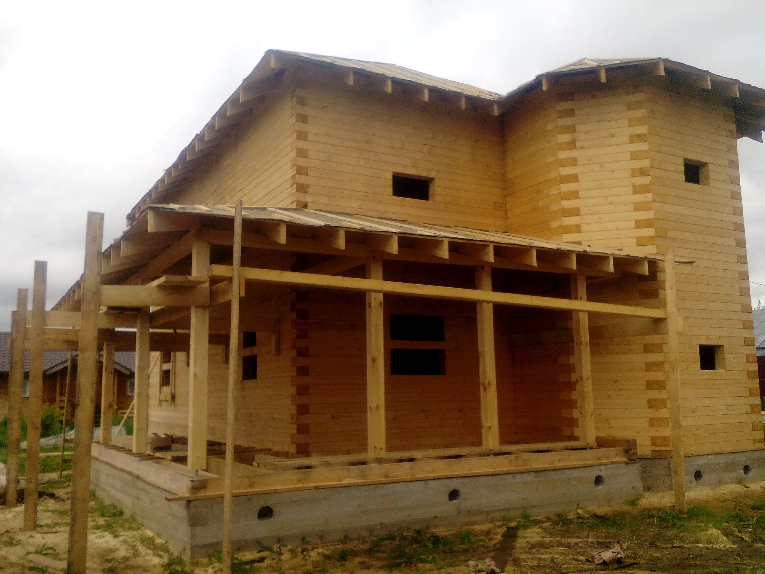 На днях закончили возведение сруба нового 2-этажного дома из бруса с эркером в г. Хотьково Сергиево-Посадского городского округа Московской области.