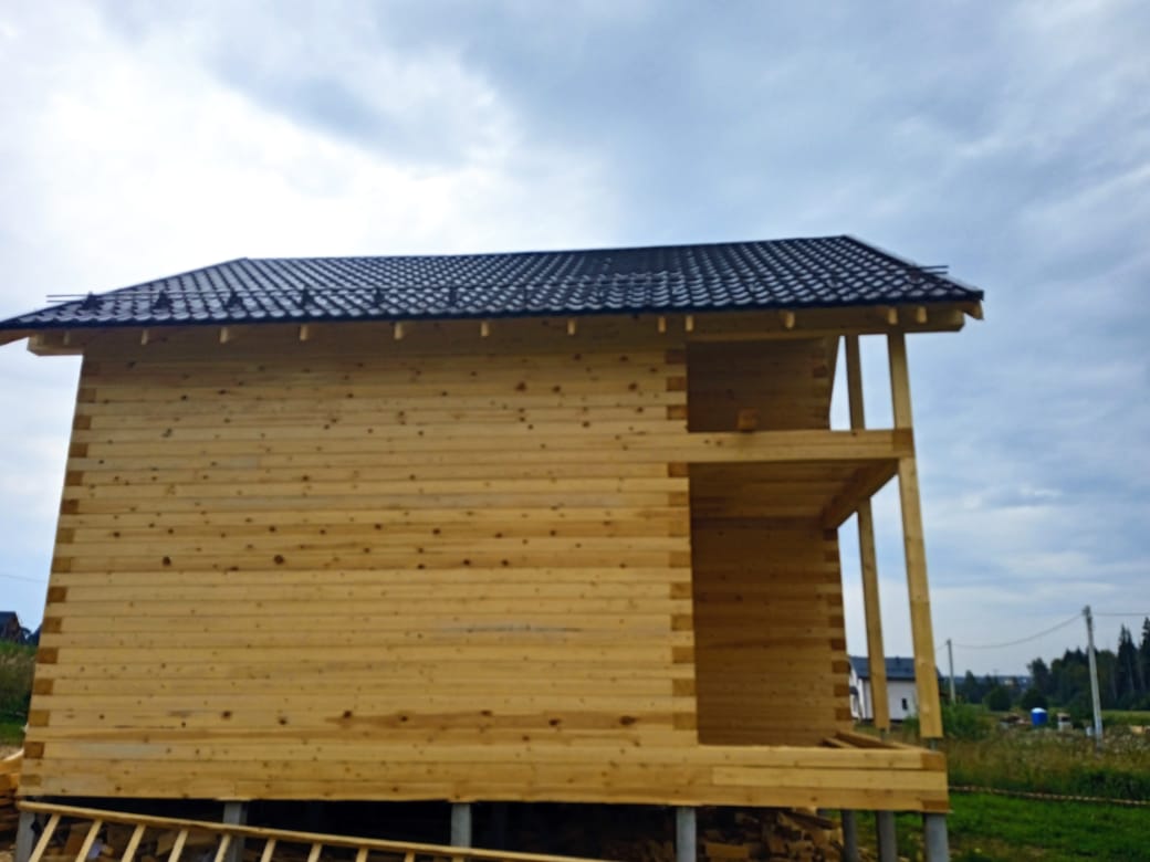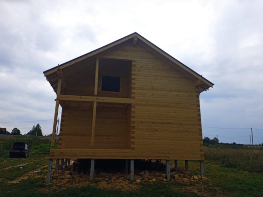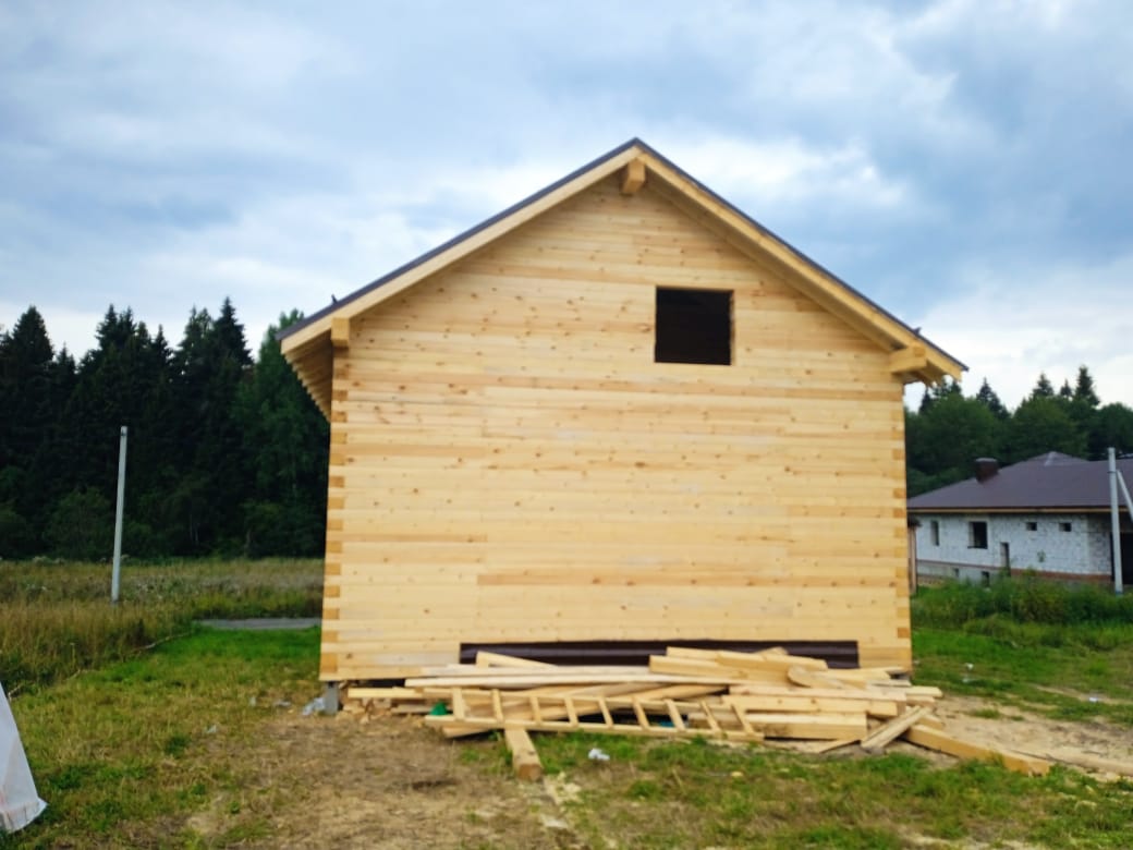 Летом 2023 года сдан под усадку дом по проекту ДБ-99. Дом из бруса по согласованным параметрам бруса, полтора этажа, крыша из металлочерепицы, фундамент - железо-бетонные сваи. Срок возведения около 1 месяца.