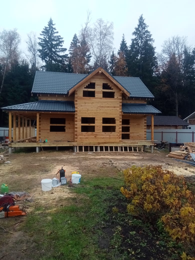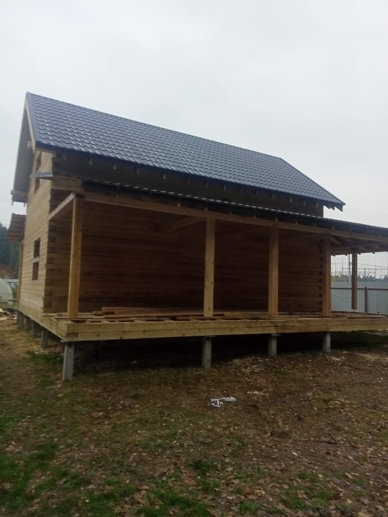 Сдан большой двухэтажный дом из бруса 10х6 м с большой террасой.