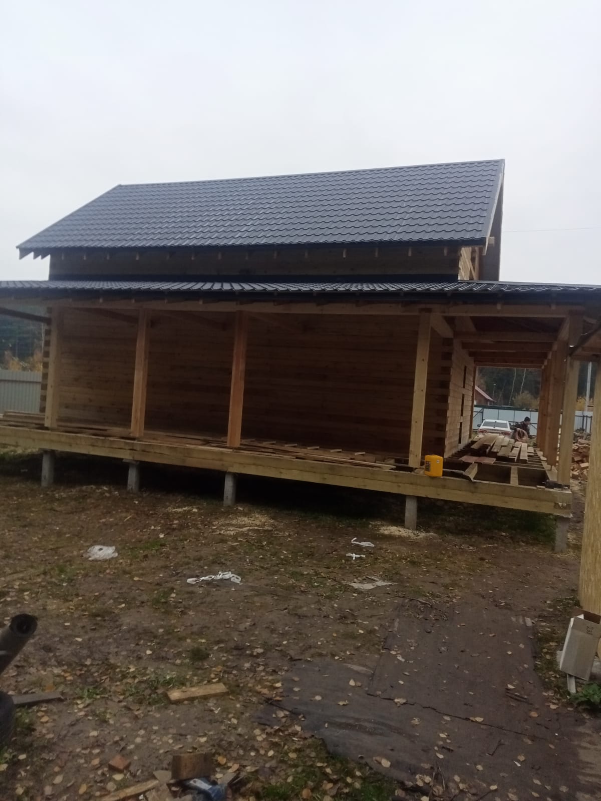 Крыша из металлочерепицы, фундамент - железобетонные сваи (36 штук)