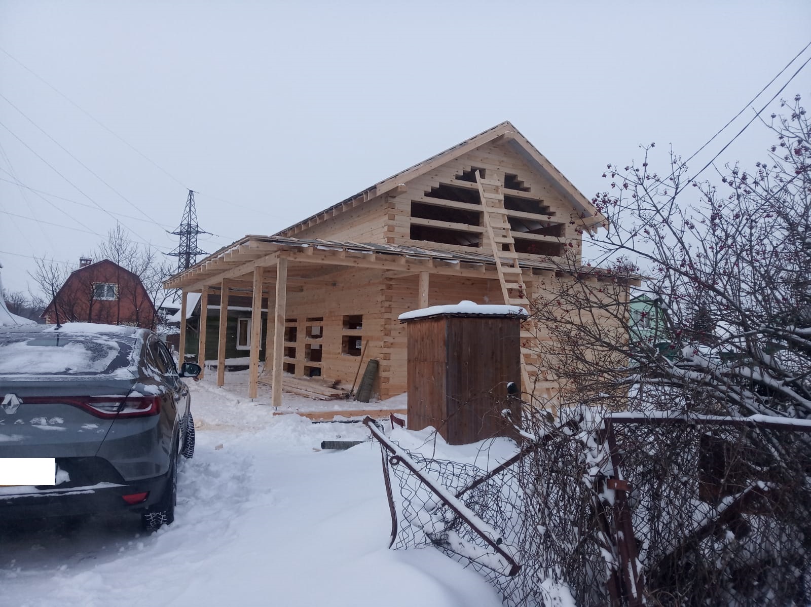 Закончено строительство небольшого полутораэтажного дома из бруса 150х200 мм естественной влажности. Дом сдан под усадку. Дальнейшие работы запланированы через несколько месяцев.