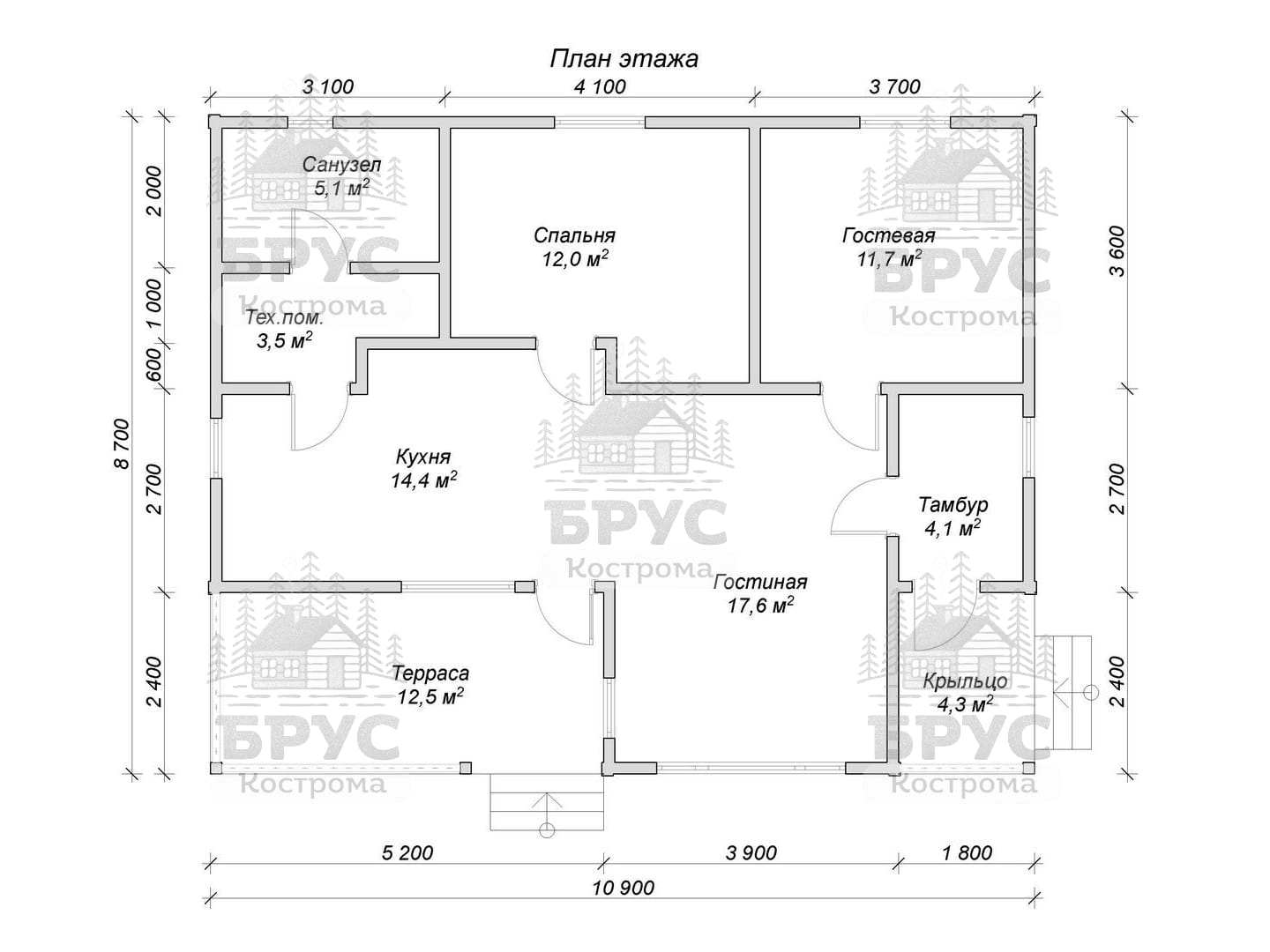 • Размеры: 8.7 x 10.9 м