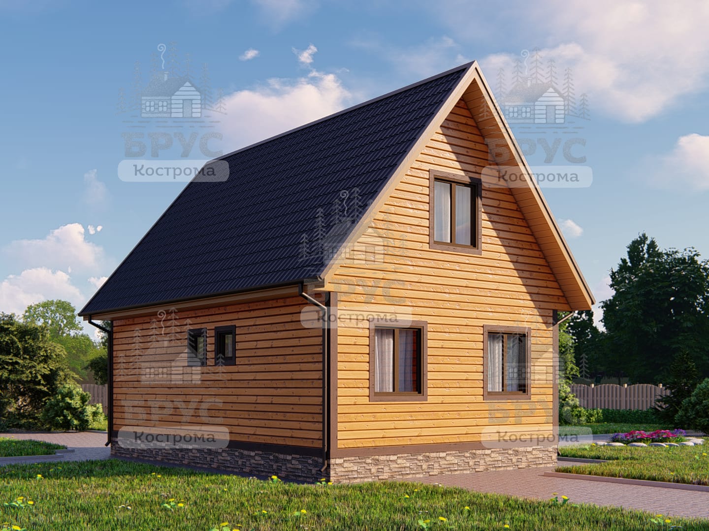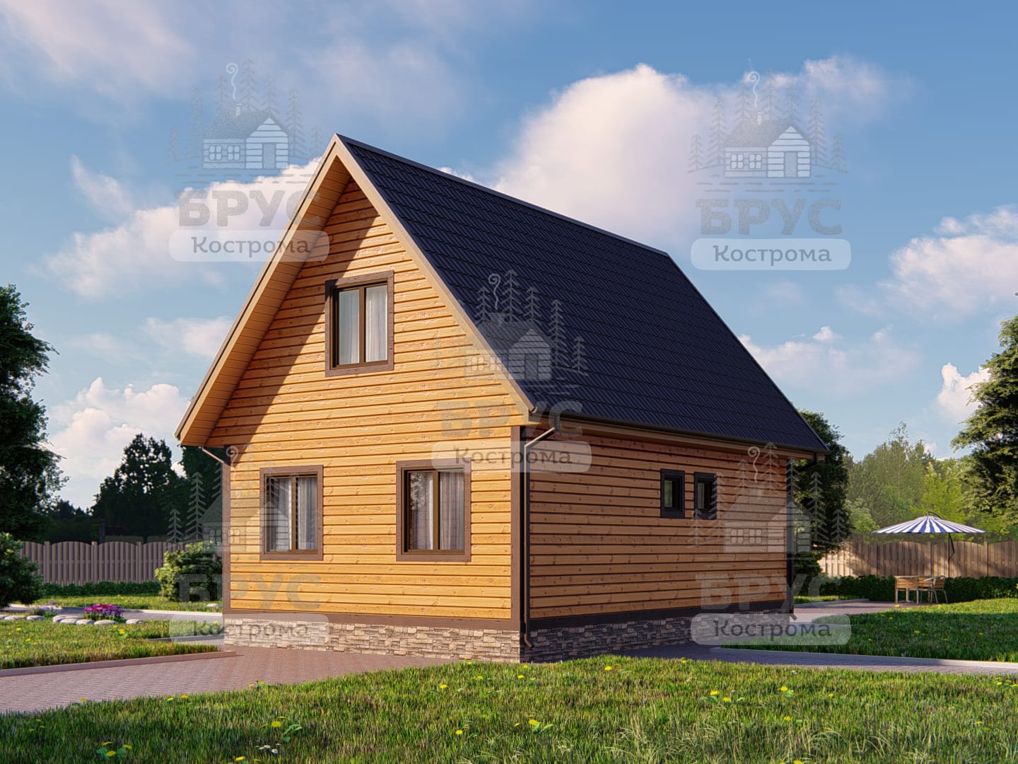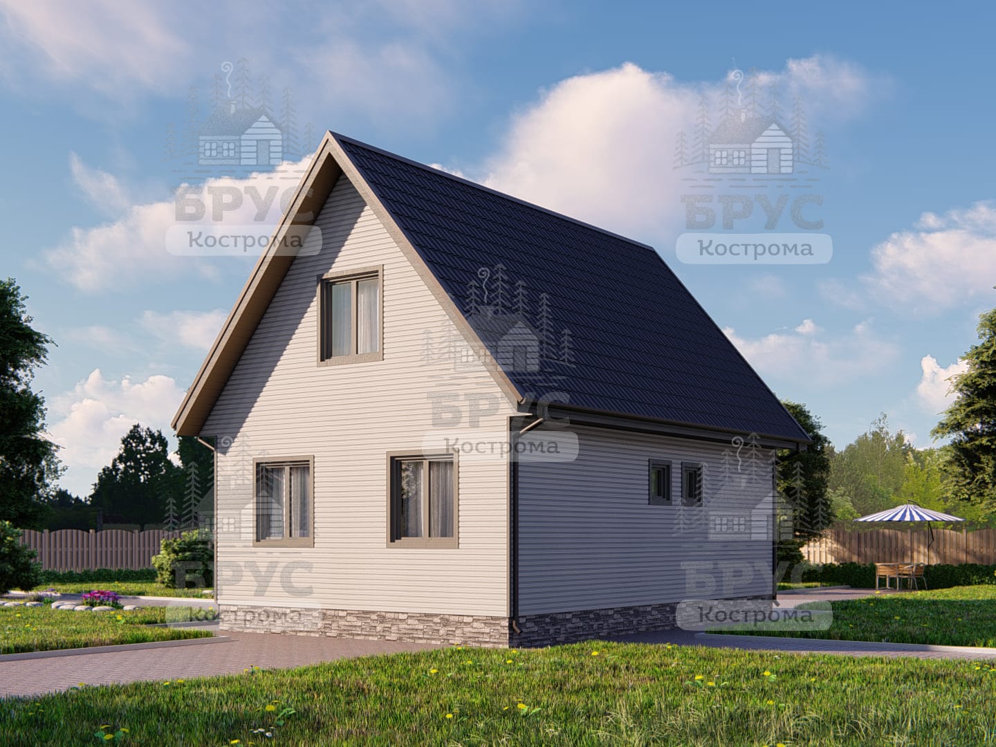 Одноэтажный дом с мансардой и крыльцом. Двухскатная крыша.