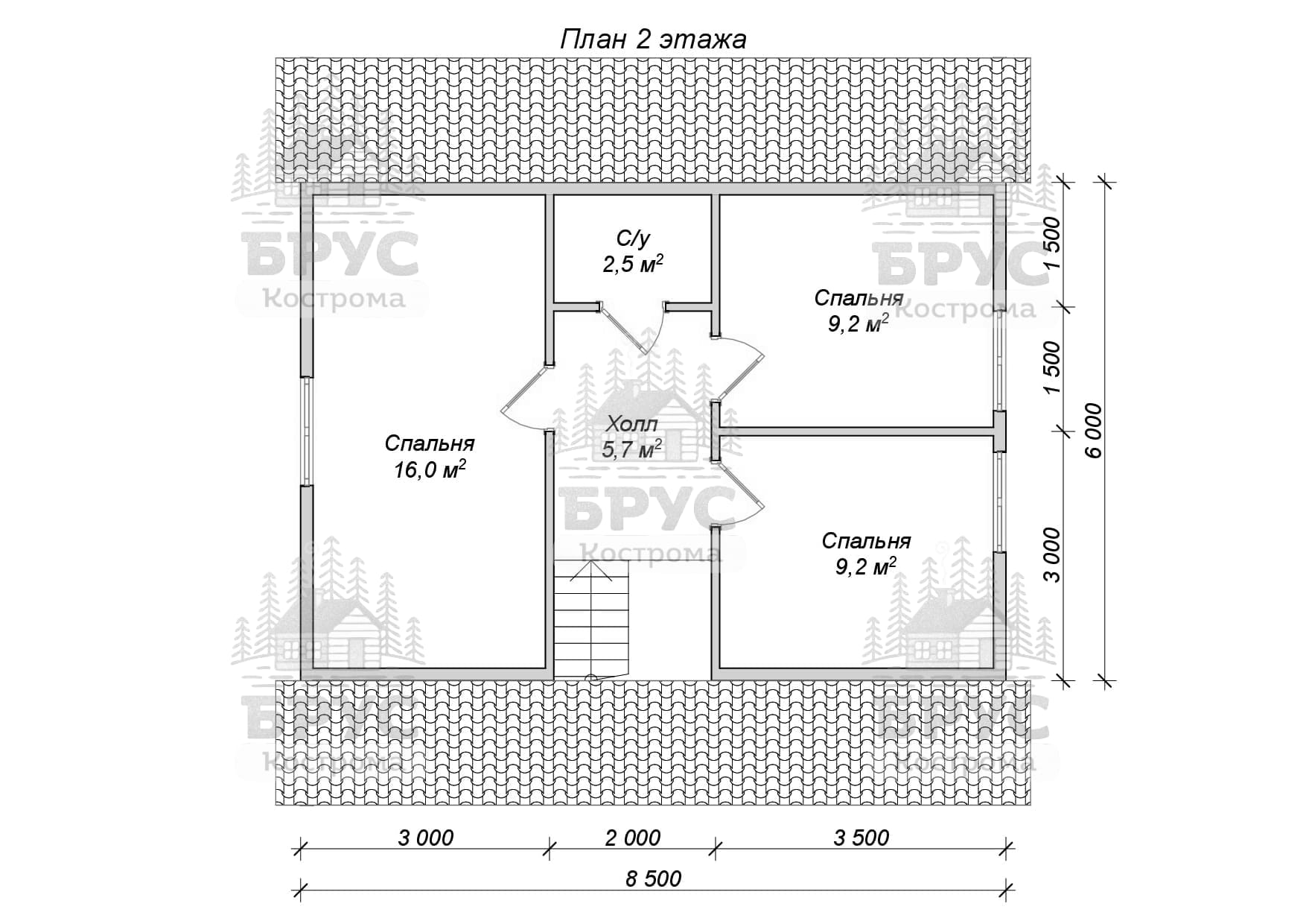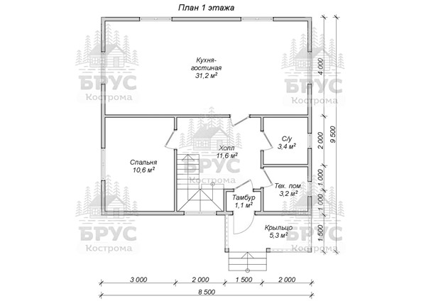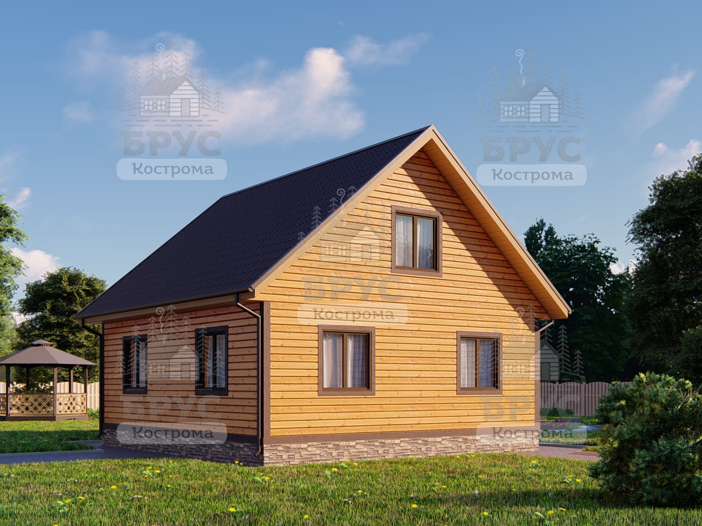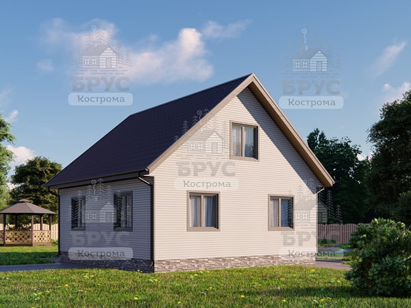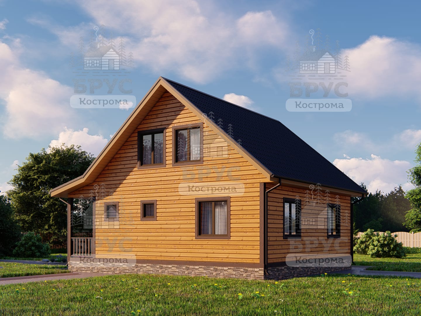 Одноэтажный дом с мансардой и крыльцом. Двухскатная крыша.