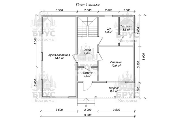 • Размеры: 9 x 8 м