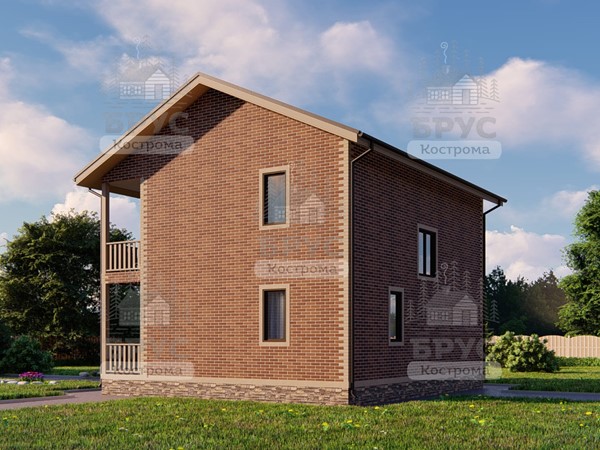 Двухэтажный дом с крыльцом и балконом.