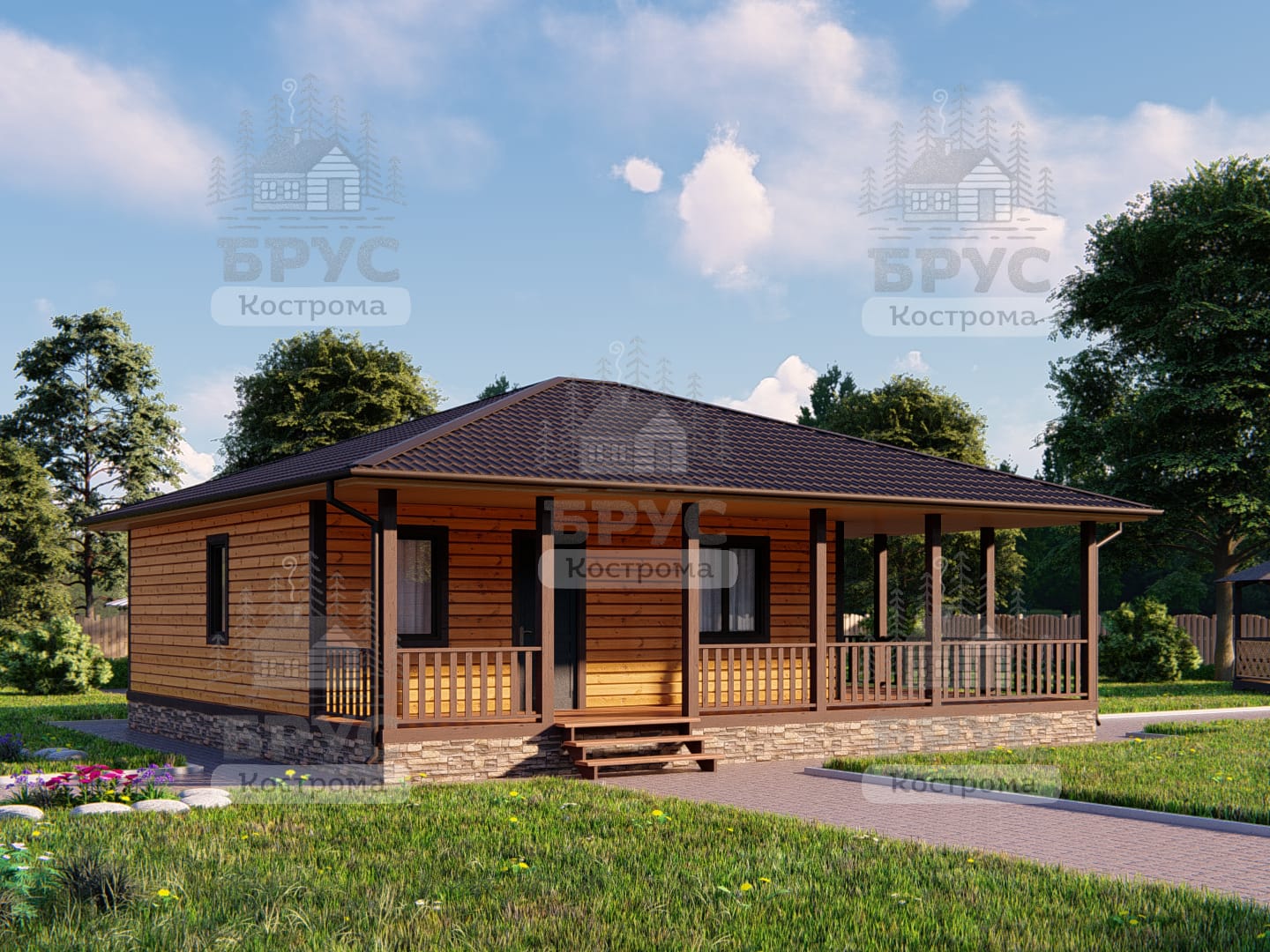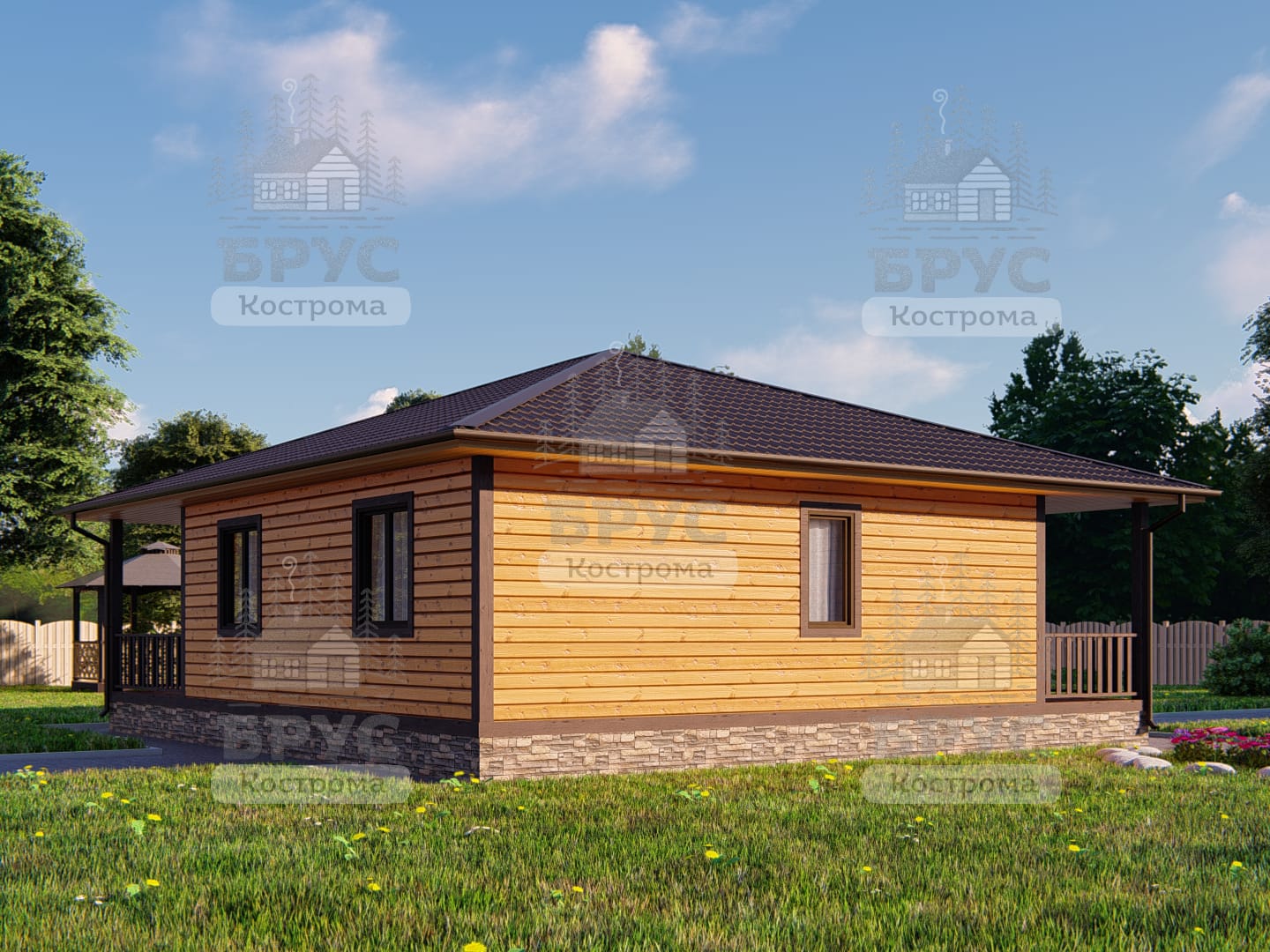 Одноэтажный дом с террасой
