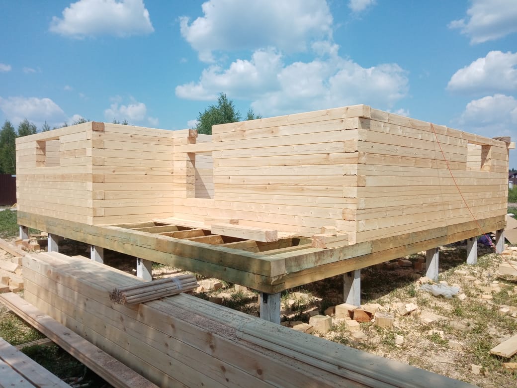 Закончено строительство под усадку двухэтажного дома 8х8 метров из профилированного бруса естественной влажности сечением 150х200 мм.