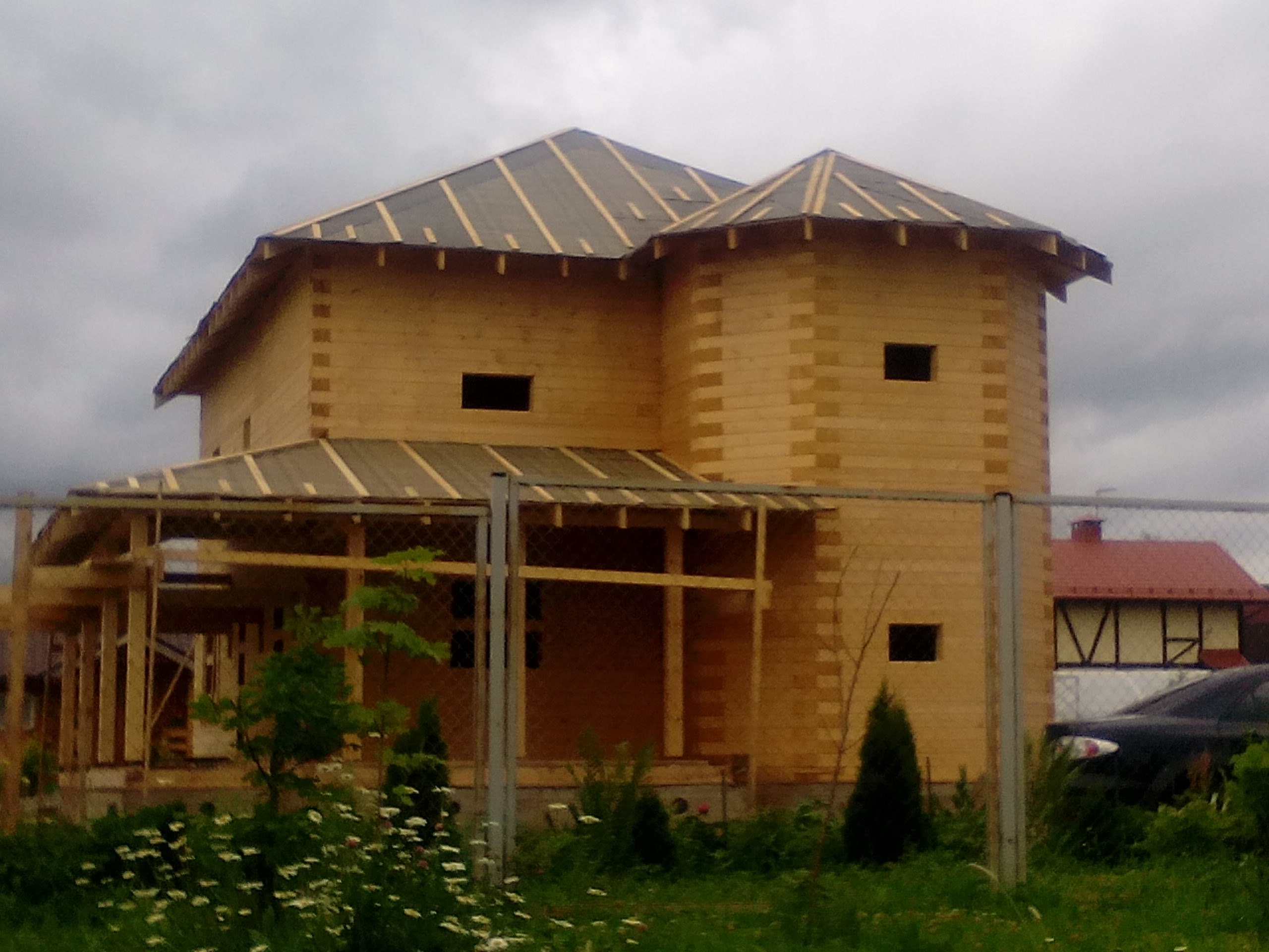 На днях закончили возведение сруба нового 2-этажного дома из бруса с эркером в г. Хотьково Сергиево-Посадского городского округа Московской области.